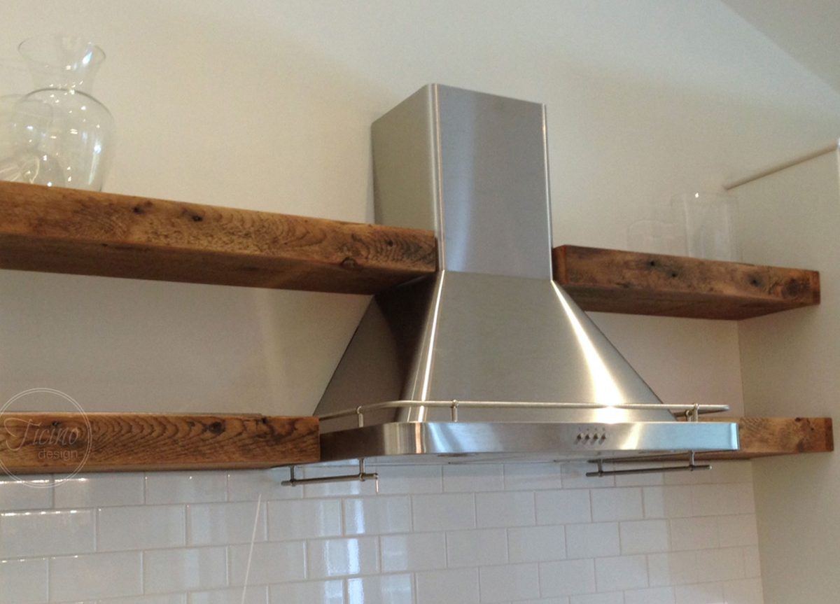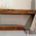 Reclaimed Wood Floating Shelves Floating wall-mount shelves fashioned out of reclaimed wood rafters and flat stainless steel. $550 View In Store
