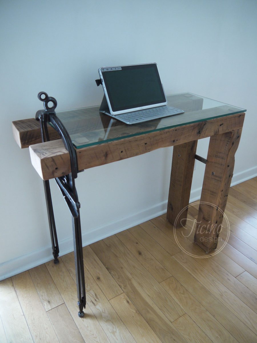 Modern Rustic Computer Desk Hand-made glass-top computer desk incorporates a salvaged hay claw into its design. $1,100 – base only $1,450 – base and glass top